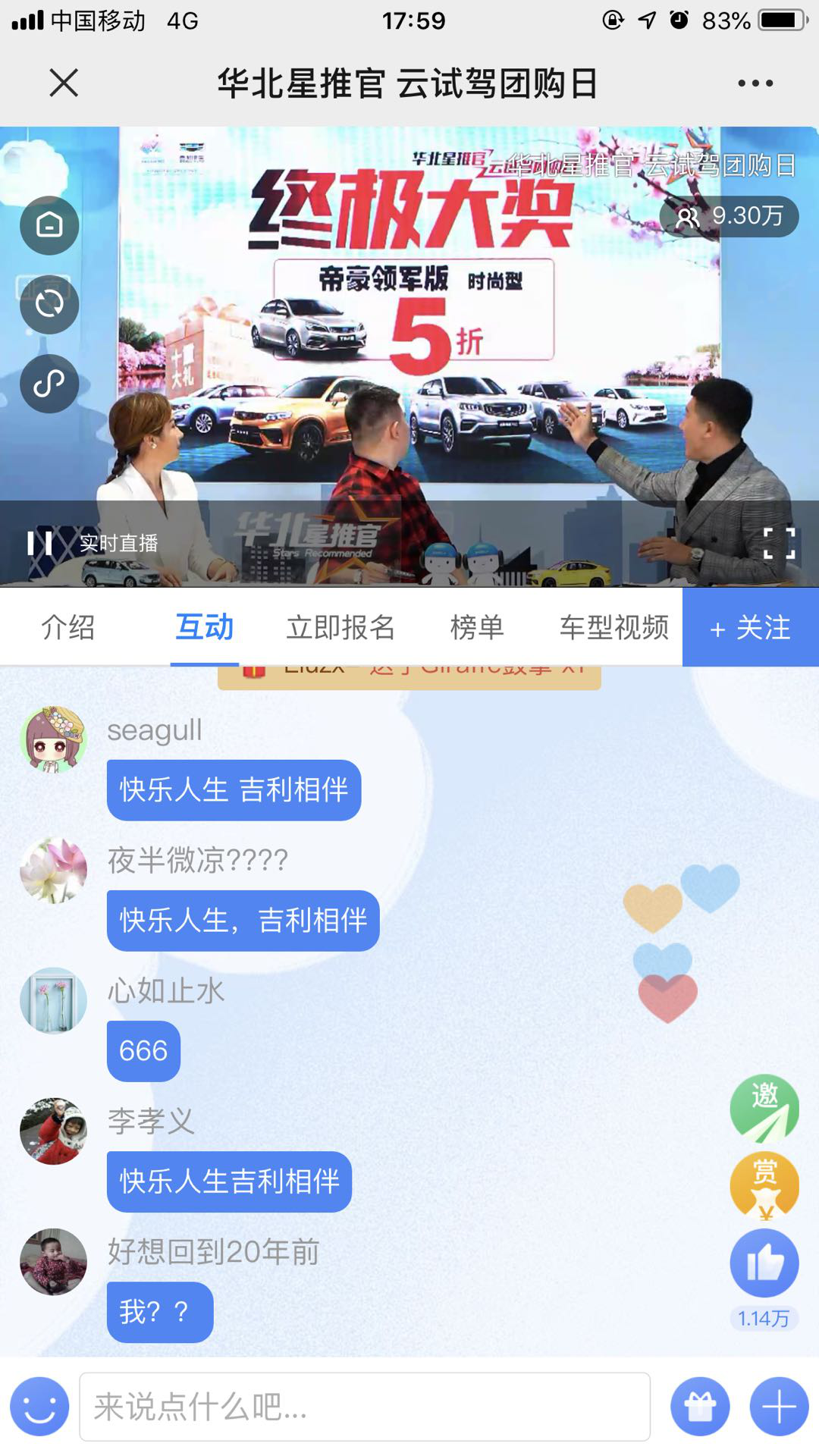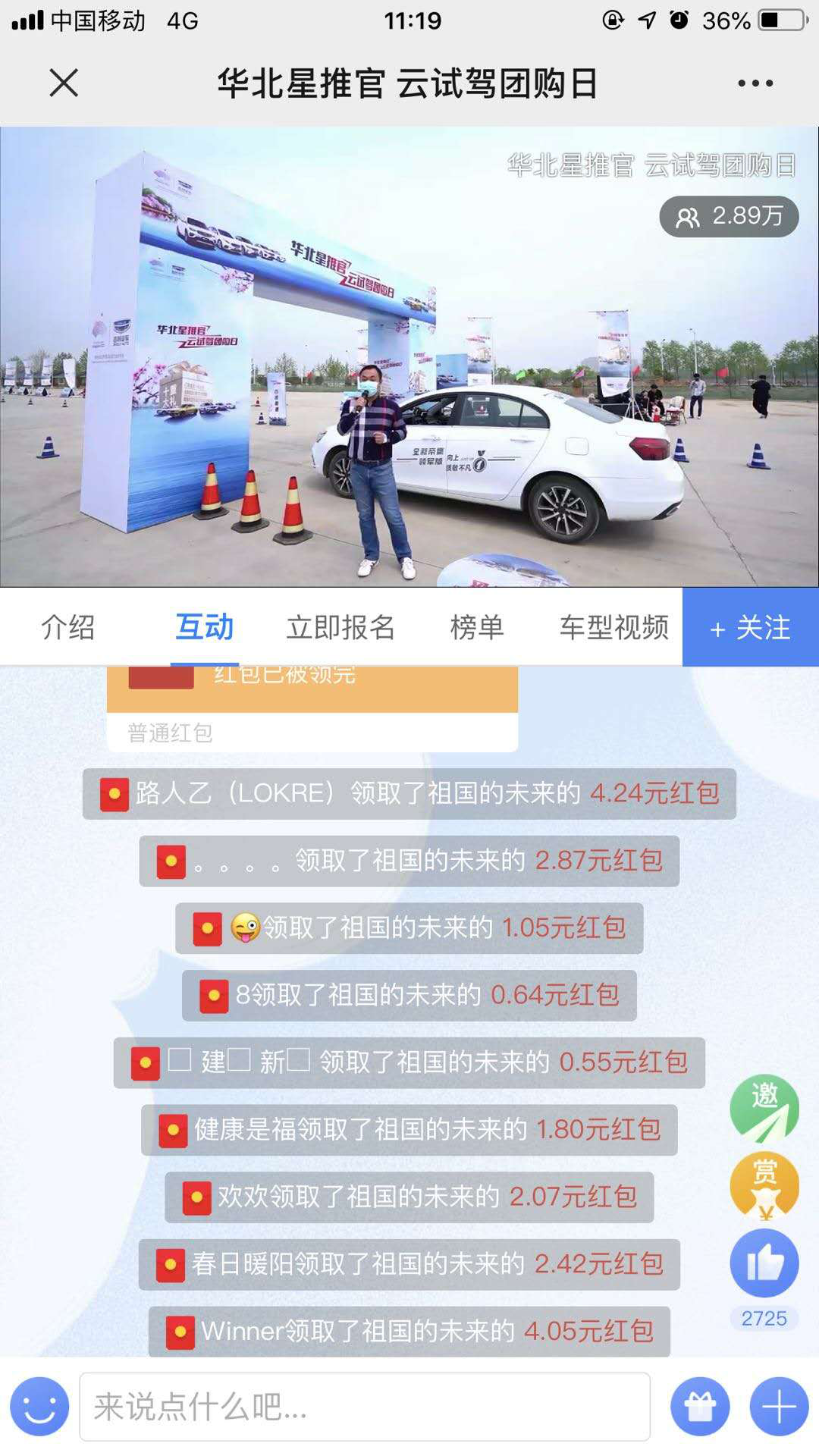 線上團(tuán)購現(xiàn)場,與大咖面對面,邀請大咖星推官在線講車,開局紅包雨人人可搶,點(diǎn)燃現(xiàn)場氣氛,還有訂車抽獎,半價(jià)帝豪等多重好禮輪番轟炸,將現(xiàn)場氣氛推向高潮,到場人員皆滿載而歸。
