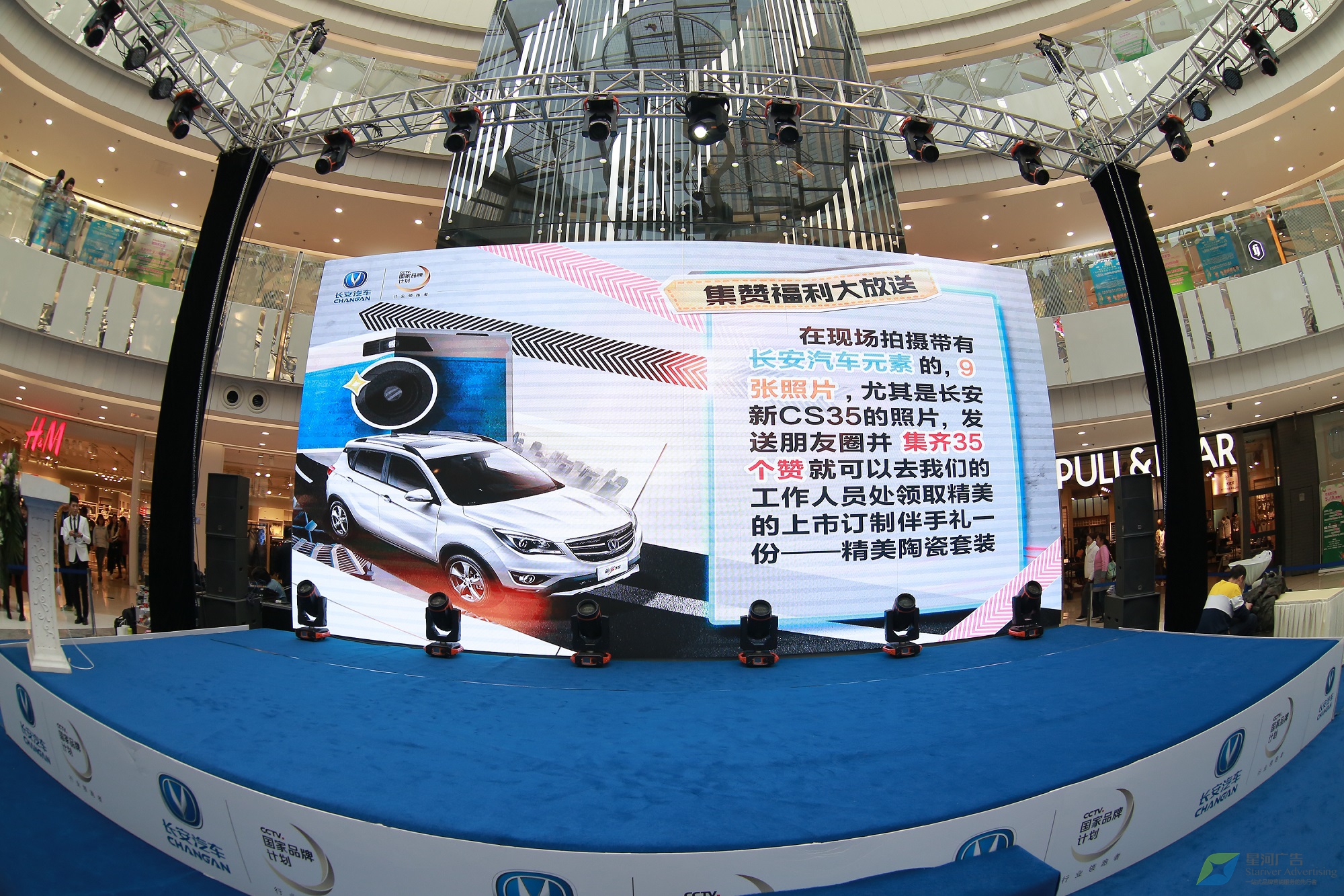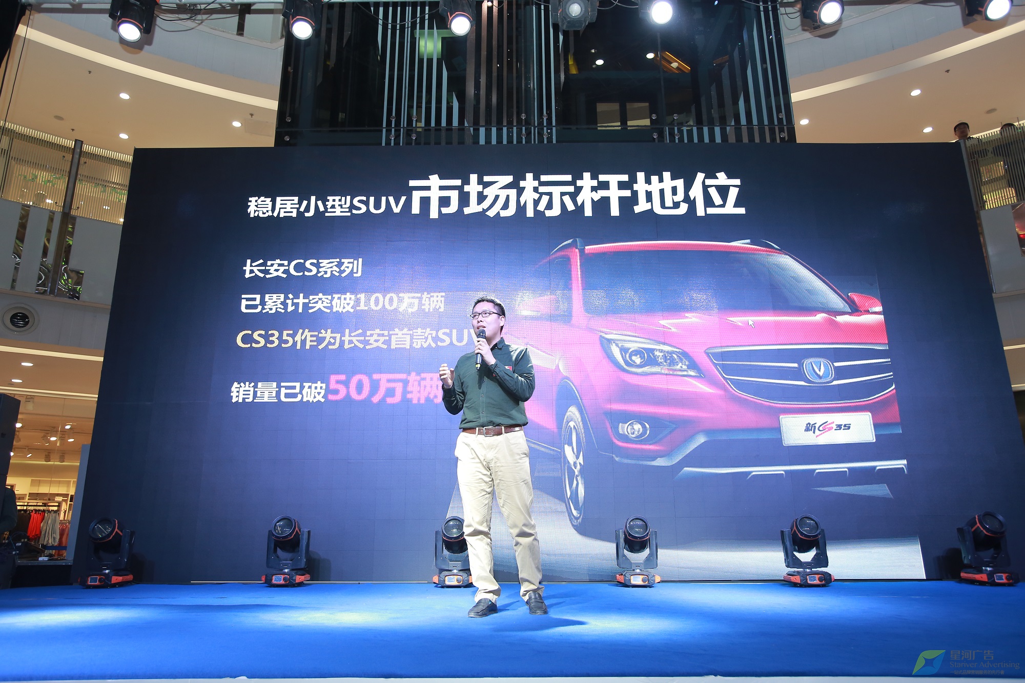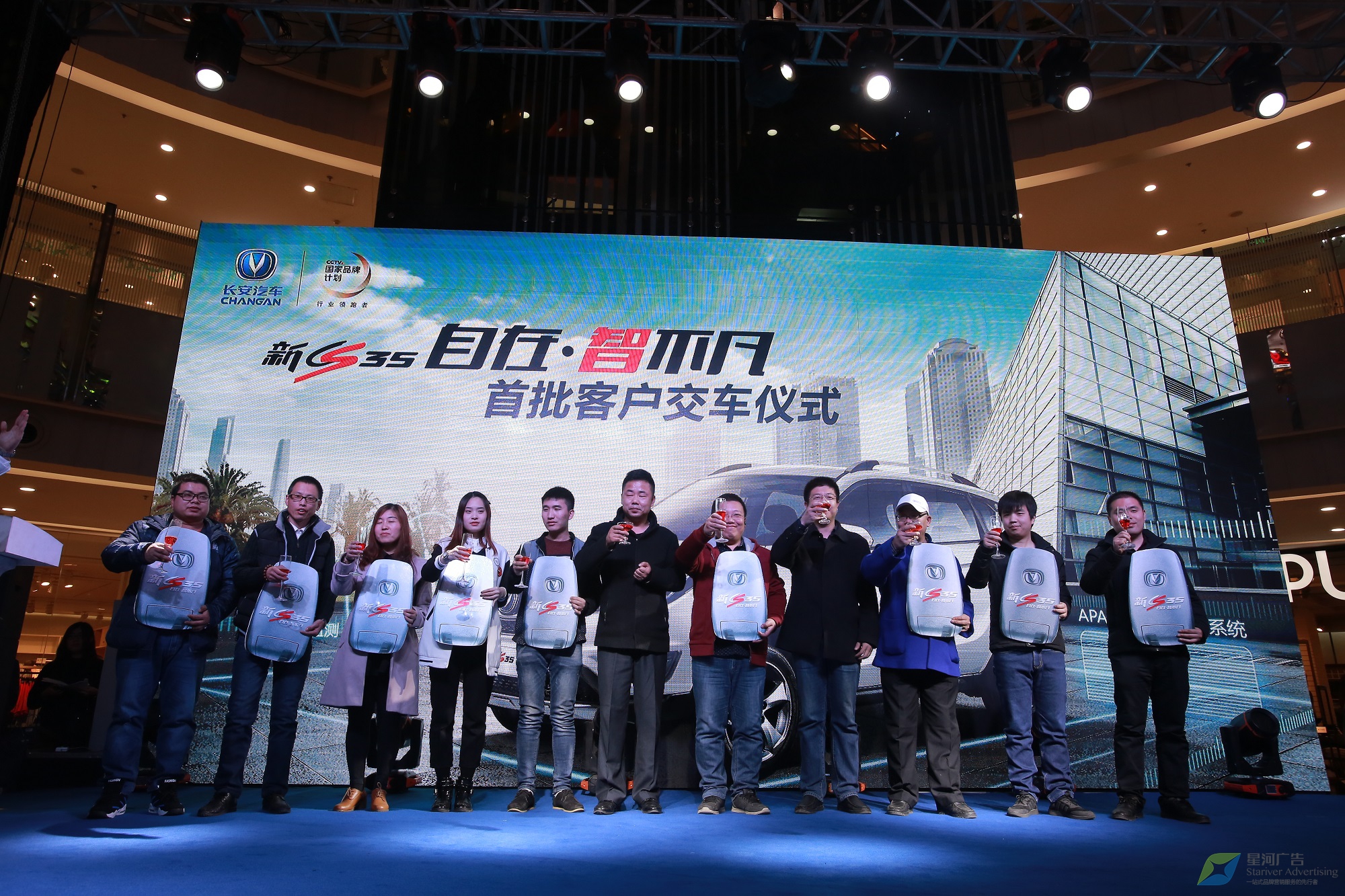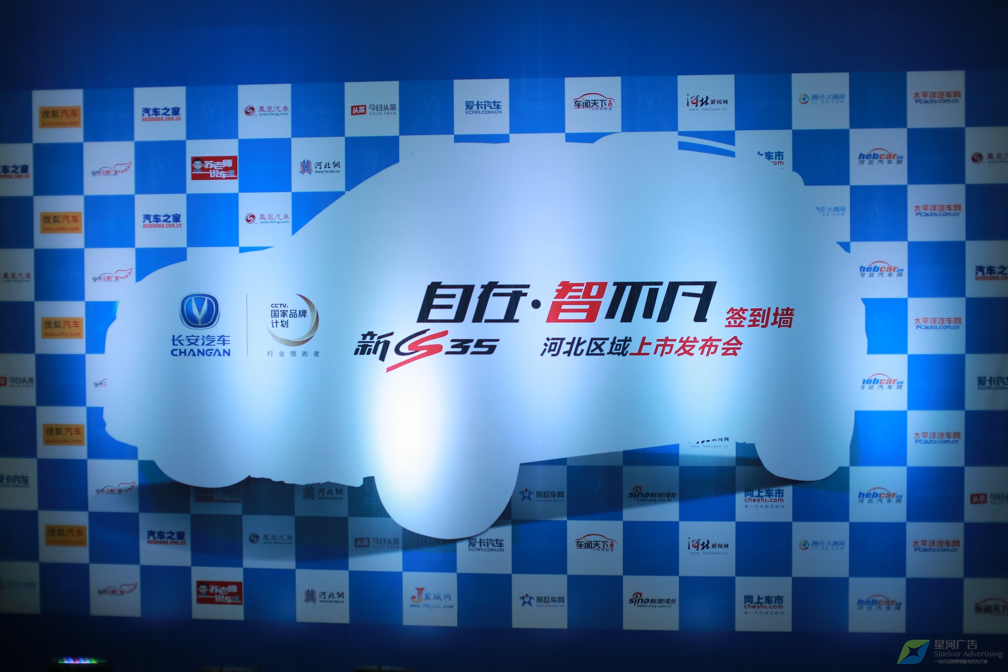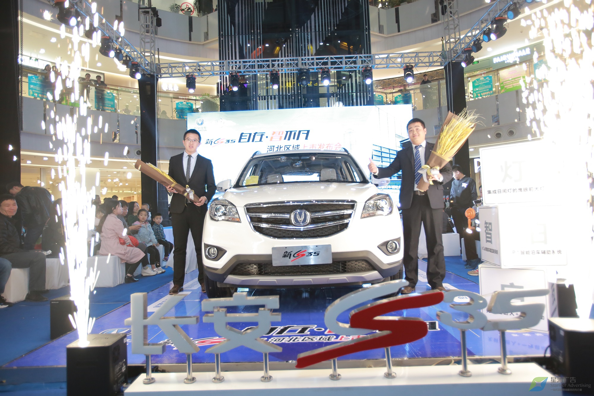 策劃實施新品上市發(fā)布會,使“長安新CS35”在華北地區(qū)精彩亮相的任務(wù)自然落在了其區(qū)域代理星河廣告的肩上。而客戶對活動現(xiàn)代化、形式多樣化和服務(wù)標(biāo)準(zhǔn)化方面有非常高的要求,是星河面臨的一個挑戰(zhàn)。