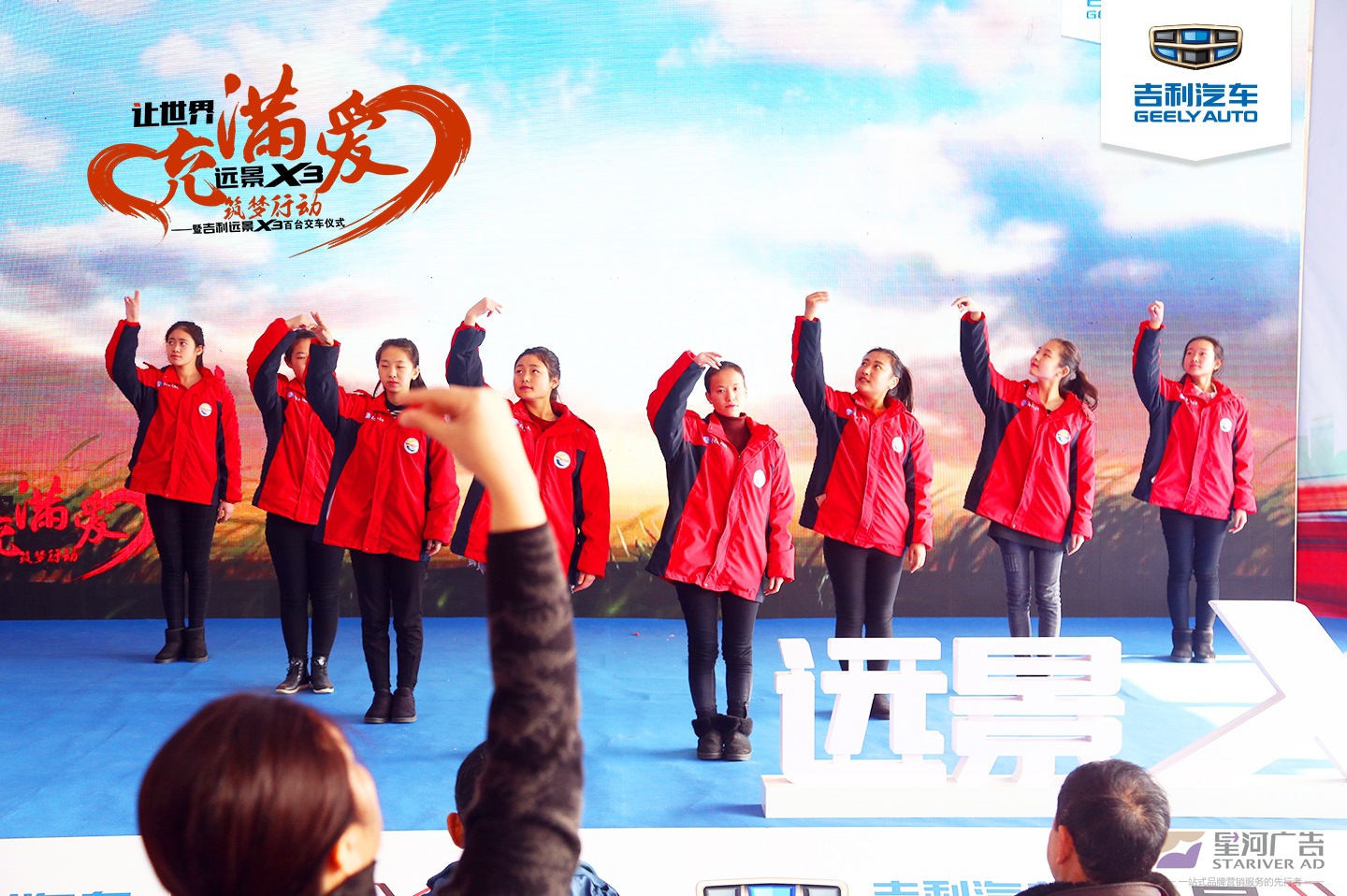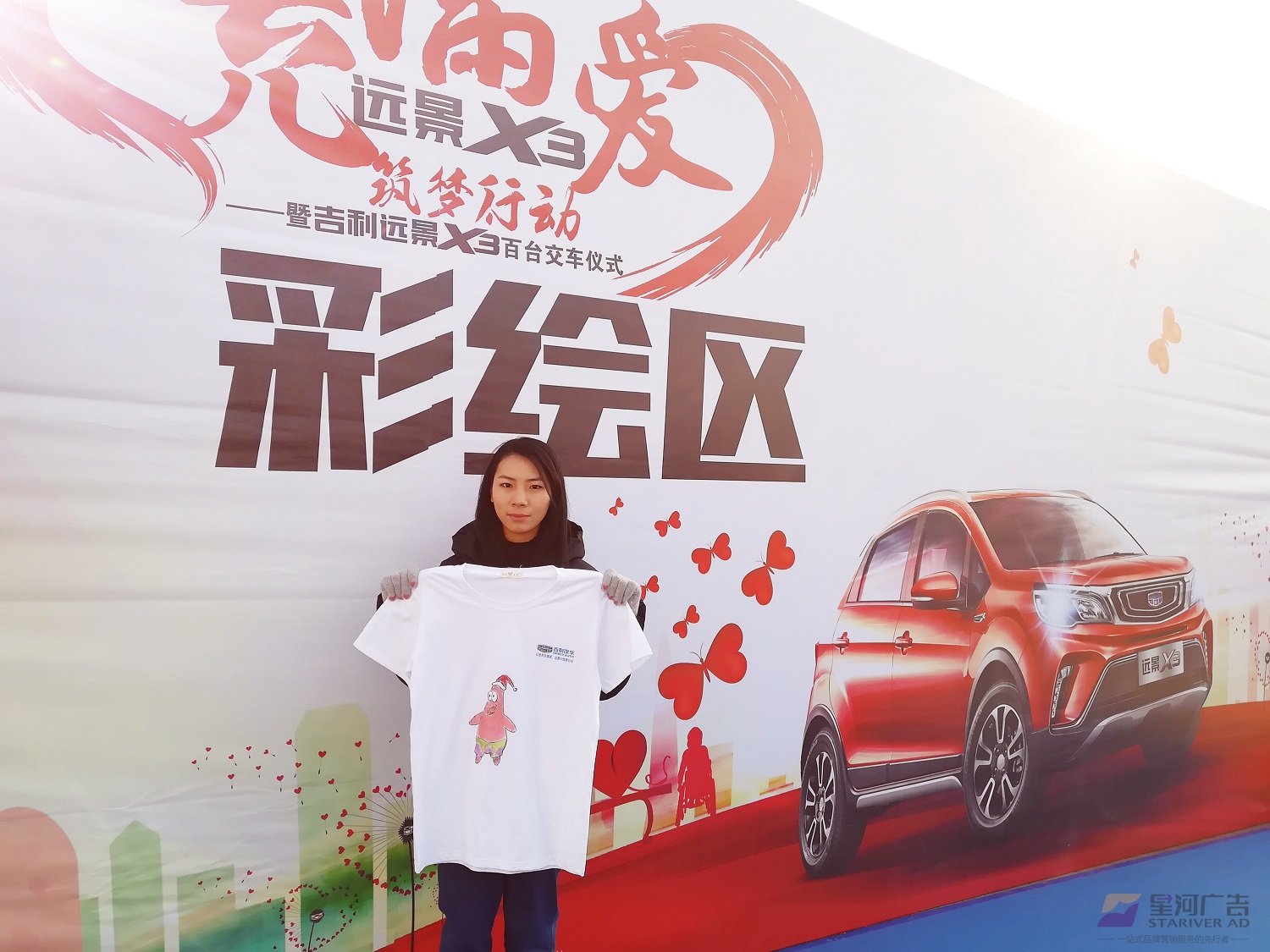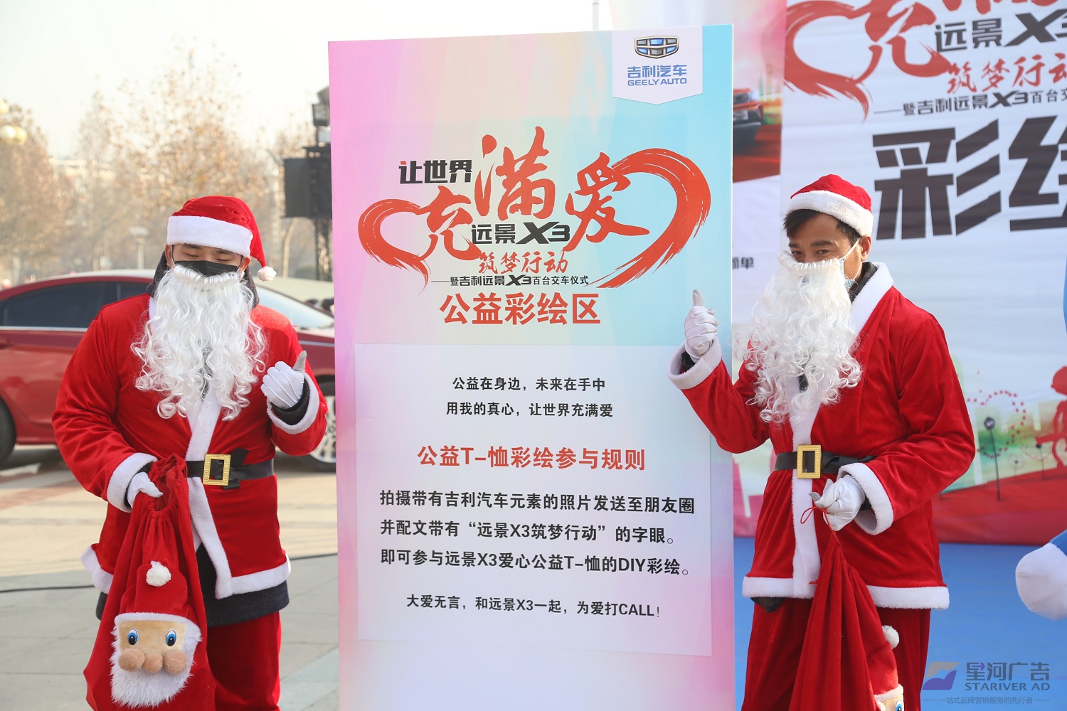 活動背景:2017年吉利遠景x3上市,新款SUV高顏值,強安全,超便利,真舒適以及超劃算迎來了上市。如何讓客戶更加詳細的了解吉利新款遠景x3和強勢曝光吉利品牌,成了我們現(xiàn)在主要面對的問題。星河廣告緊密結(jié)合世界助殘日這一活動熱點,策劃了“讓世界充滿愛,遠景x3助殘活動”這一大型主題交車活動。