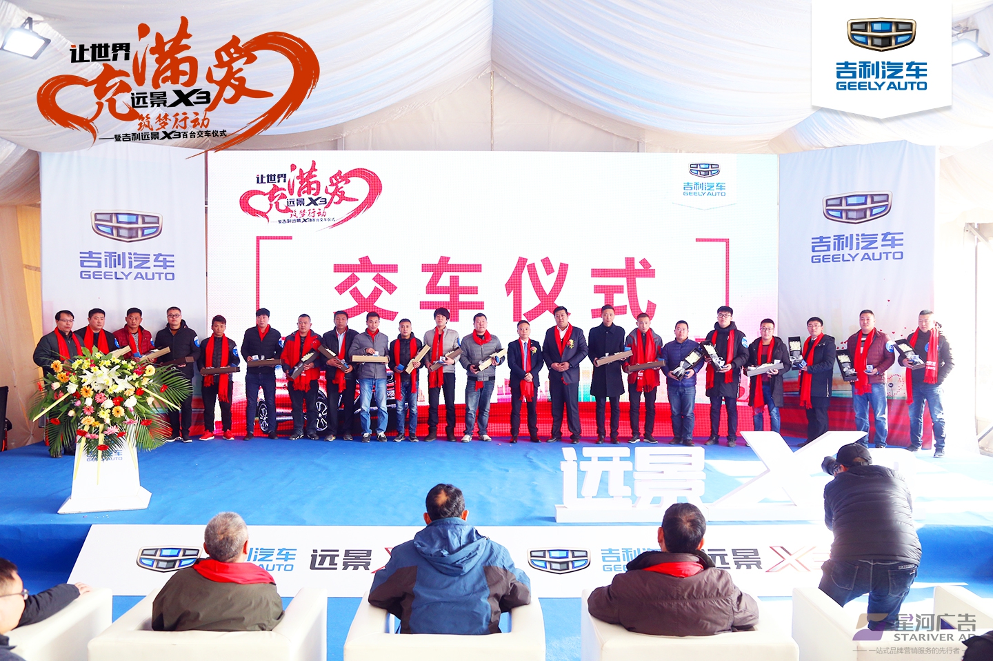 活動目的:通過公益的形式搭建百人交車盛典,提升吉利品牌高度的同時,最大化傳播熱銷場面,提升吉利品牌音量。