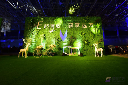 全場森系景觀的營造,奔奔置身其中,體現“智凈藍天”的新能源生活主張。