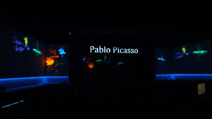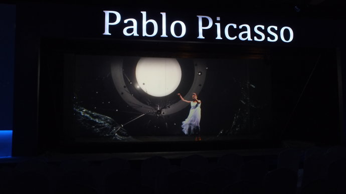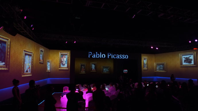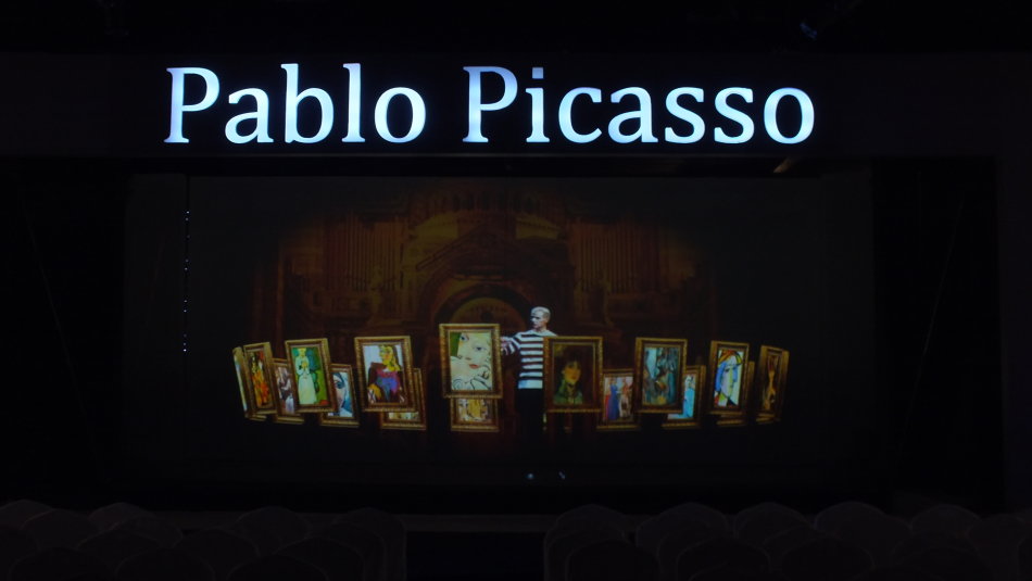 設計理念:采用舞臺及墻面投影,打造展館內(nèi)沉浸式環(huán)境。全息內(nèi)容配合演員的表演互動,重現(xiàn)了畢加索,舞臺效果真假難辨,最終達到了“穿越時空”的效果。
