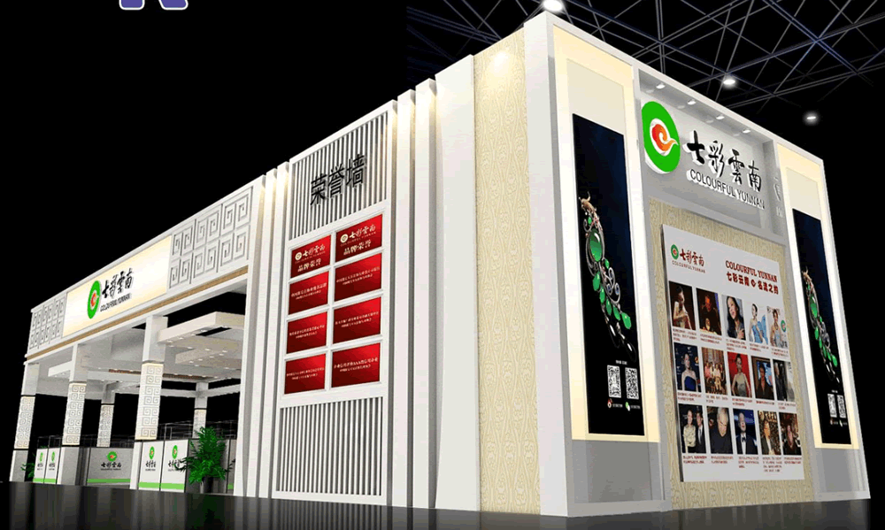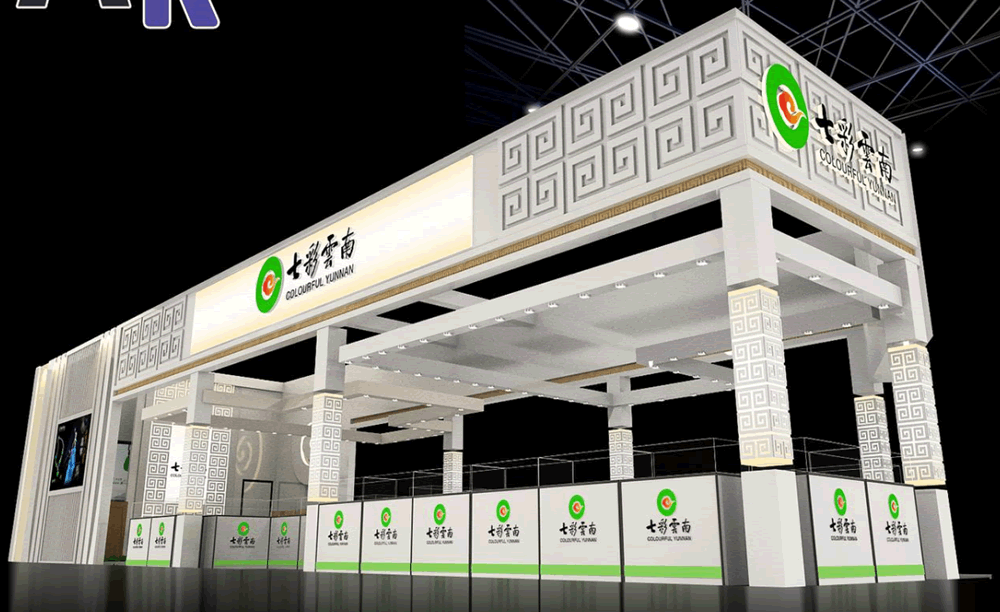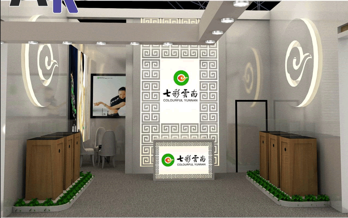 設(shè)計(jì)理念:在滿足客戶需求的基礎(chǔ)上,運(yùn)用品牌本身的宣傳點(diǎn)和宣傳圖片,提取主要圖形和樣式,把這些本身屬于七彩云南的特色元素運(yùn)用到展臺上,讓大家對七彩云南更加熟悉。