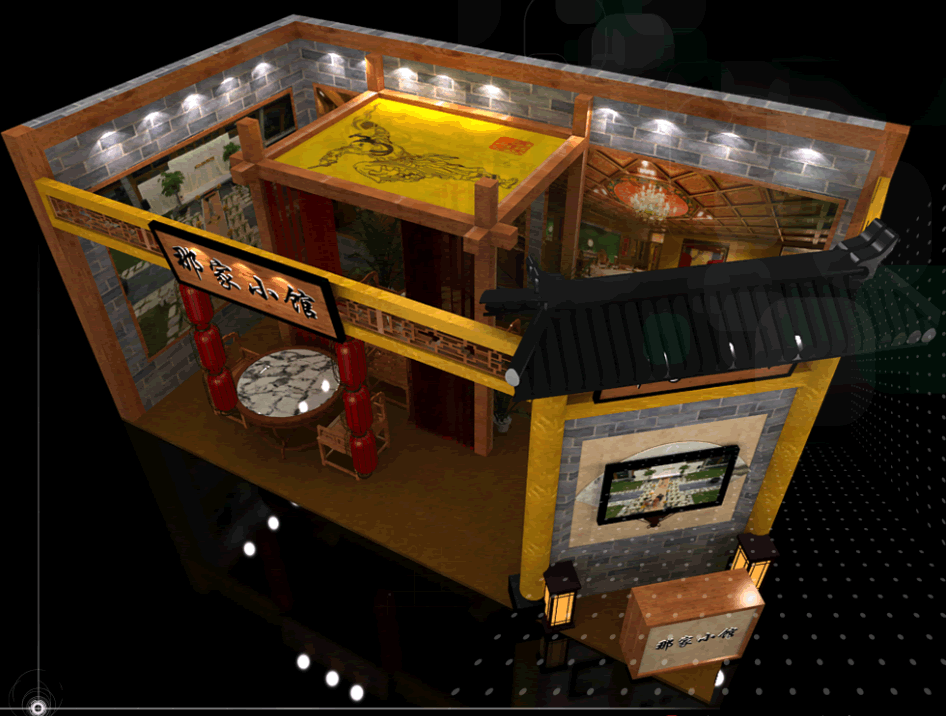 設(shè)計(jì)理念:那家小館是一家宮廷味道的北京菜菜館,結(jié)合菜館本身的裝潢特色保持它自己的特色做出符合菜館調(diào)性的展臺(tái)。讓展臺(tái)在眾多展位里獨(dú)特,顯眼很好的引流到展臺(tái),也起到了很好的宣傳作用。