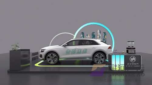 客戶需求:把展位設(shè)計(jì)和自己汽車產(chǎn)品本身的調(diào)位結(jié)合在一起,起到宣傳的作用。