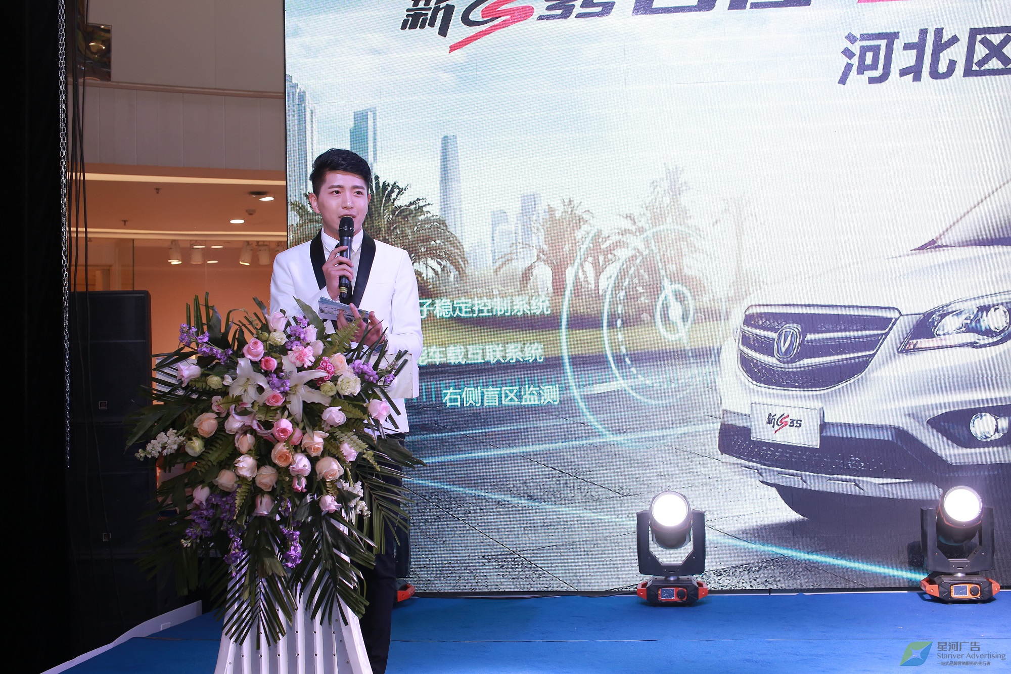 策劃實施新品上市發(fā)布會,使“長安新CS35”在華北地區(qū)精彩亮相的任務(wù)自然落在了其區(qū)域代理星河廣告的肩上。而客戶對活動現(xiàn)代化、形式多樣化和服務(wù)標(biāo)準(zhǔn)化方面有非常高的要求,是星河面臨的一個挑戰(zhàn)。