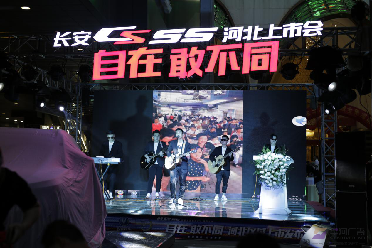 石家莊星河廣告在對產(chǎn)品與客群做了深度剖析后,結(jié)合區(qū)域營銷環(huán)境,用一場轟動全城的“搖滾轟趴夜”詮釋CS55自在不同的產(chǎn)品內(nèi)涵,并通過晚間迎合受眾口味的“個性風(fēng)”上市,引發(fā)受眾對“自在敢不同”的情感共鳴。