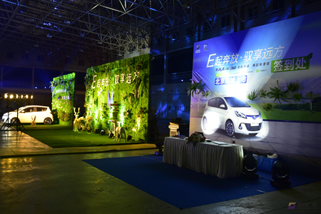全場森系景觀的營造,奔奔置身其中,體現“智凈藍天”的新能源生活主張。